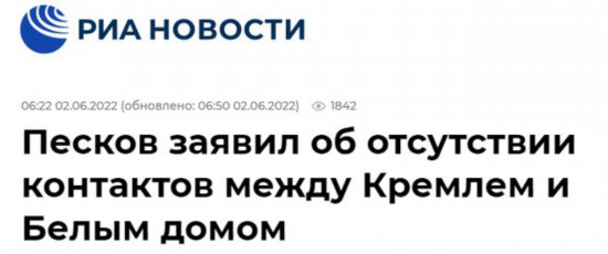 《俄罗斯商业咨询日报》称,被问及克宫与白宫之间是否保持接触,佩斯科夫回应说,“可以说没有(接触),目前没有。实际上已经没有任何接触”。