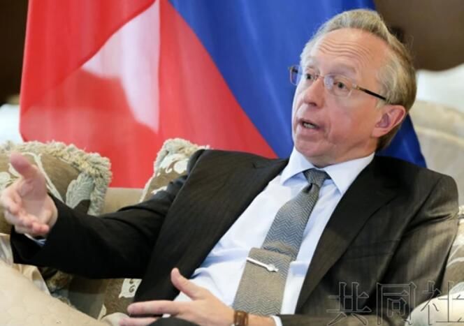 资料图:俄罗斯驻日大使加卢津接受采访(共同社)