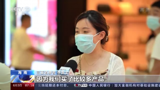 三亚消费者 李女士:优惠力度挺大的,因为我们买了比较多产品,然后跟在专柜比的话,也要差不多便宜大几千。然后用那些积分抵现的话,反正我感觉赚着了。