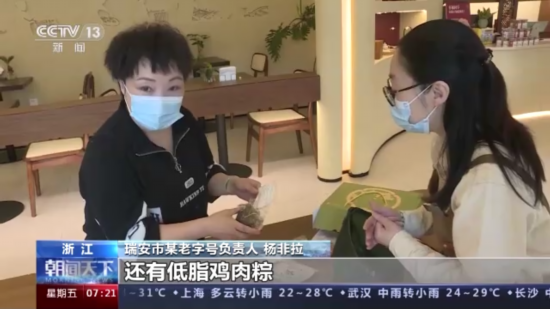 瑞安市某老字号负责人 杨非拉:我们有杂粮八宝粽,还有低脂鸡肉粽,因为大家现在的健康理念都是低脂健康,大家都很喜欢,接的订单也挺多的。