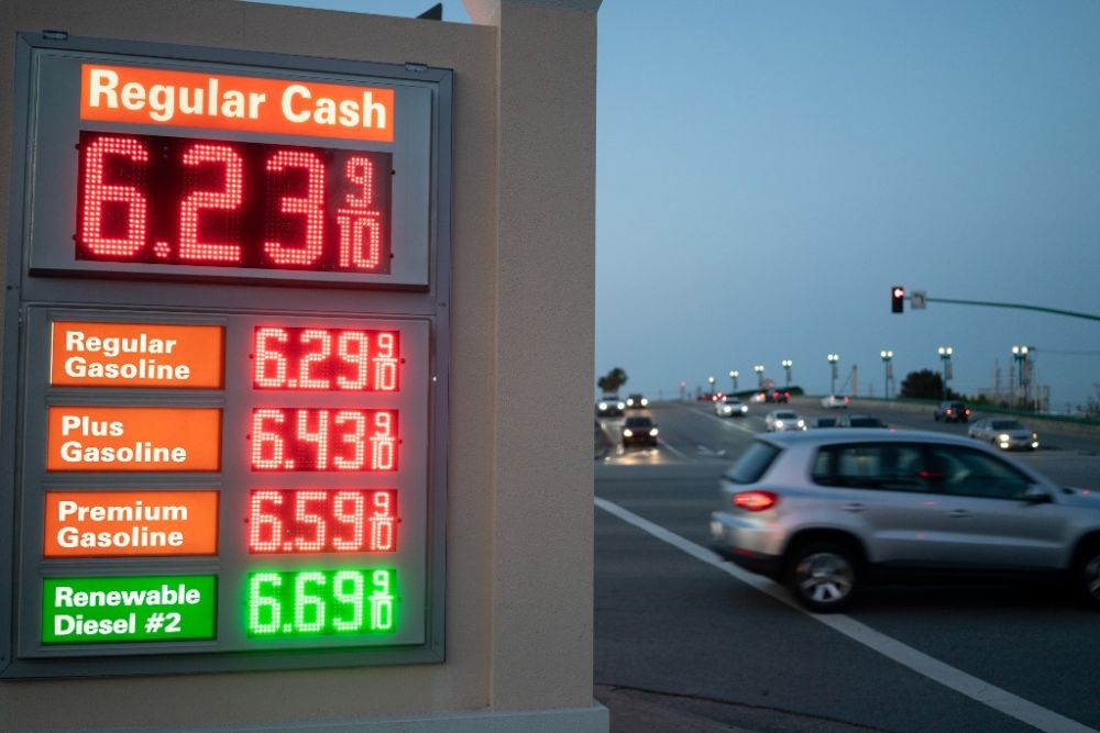 这是5月16日在美国加利福尼亚州米尔布雷拍摄的一家加油站的油价牌。美国汽车协会的统计数据显示,当日美国全国普通汽油平均价格升至每加仑4.48美元,创历史新高。新华社发(李建国摄)