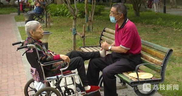 聊完了家常,子女们还会陪着父母在院子里散散步,探视区域到处都是欢声笑语,子女们的到来,也让老人们喜笑颜开。在门口的长凳上,吴先生正在为年迈的母亲按摩双脚,他说,母亲患有血栓,所以每次来探望,他都会为母亲按摩一下。