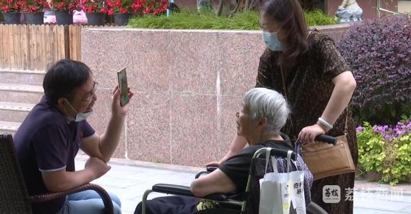 上午,在南京市玄武区的一家养老机构,通过前期预约符合疫情防控要求的王女士,早早来到这里探视母亲,由于两位姐姐没有办法到场,王女士特地打开视频通话,大家透过手机屏幕,传递节日关怀。