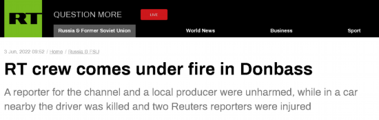 当地时间6月3日,俄罗斯方面传出消息,称在乌克兰东部前线报道俄乌冲突的两名英国路透社记者乘坐的车辆遭到炮弹袭击,导致这两名记者受伤,两人的司机当场死亡。