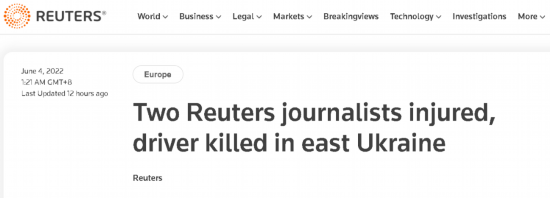 比如,这家英国媒体先是强调,两名记者乘坐的是乌克兰东部亲俄武装提供的车辆,还称司机也是乌东的“分裂分子”安排的,且车子当时行驶在俄方控制的道路上。但路透社随后又表示,他们已经就袭击事件向乌克兰军方寻求回应,后者没有置评。