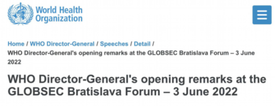 世界卫生组织官网发布谭德塞在“GLOBSEC”论坛上的致辞内容