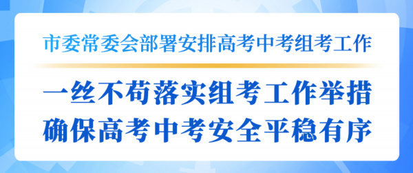 随着高考、中考日渐临近,全市各地各部门要提高政治站位,坚持人民至上,全面落实中央和省、市部署要求,以最高标准、最严要求、最实举措,对各环节工作流程再梳理、再检查、再落实,确保高考中考各项工作顺利进行。