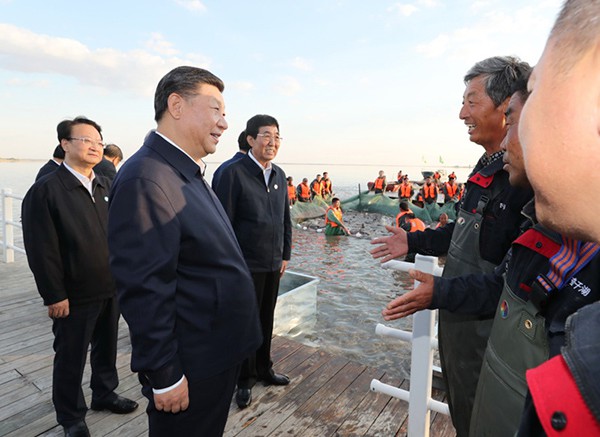 2018年9月26日,习近平总书记在吉林松原市查干湖同正在捕捞作业的渔场职工交流。(新华社发)