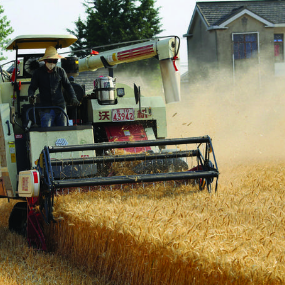 高邮市卸甲镇首家村级土地合作社——潘阳村土地股份合作社的1934亩成熟小麦已进入大面积收割期。潘阳村党总支书记王文忠说:“从目前收割的情况来看,今年合作社小麦产量有望比去年同期增长10%,合作社每亩可增收140元左右,今年又是一个丰收年”。