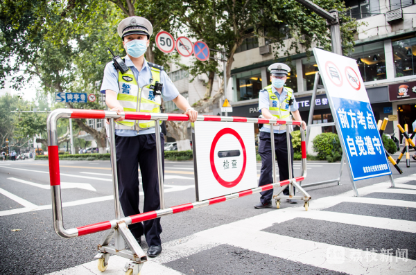 高考期间南京交警将对部分道路采取临时性交通管控措施。6月8日下午为高考外语科目考试,为了减少交通噪音对考生的干扰,当天14点50分至15点30分南京交警将对南京主城区内的15处高考考点周边道路实行临时交通管控,提前在路口设置移动式隔离栏和落地标牌,上书“前方考点 自觉遵守”,并配禁行与禁鸣标志,对机动车及噪音较大的非机动车进行分流。