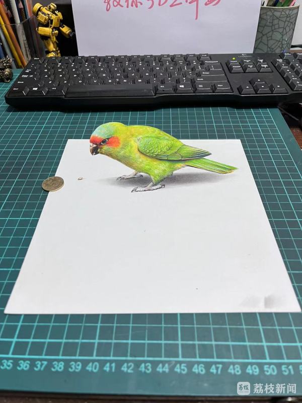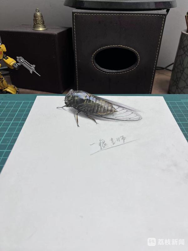 在平面的画纸上,造出立体的事物,是曹志画作的最大特点。无论天上飞的,地上走的,或是水里游的,他都能惟妙惟肖地画出来,网友们纷纷惊叹”看起来就是真的”!截至目前,曹志已拥有粉丝500万。“《蝉》也是我应该是一个月前画的,当时我画这个画也是三四个小时时间,就是从起稿到完成,画完了以后,我就把它发到各个视频平台上,都取得了非常大的热门效果,像这个视频号上已经7000万的播放。”