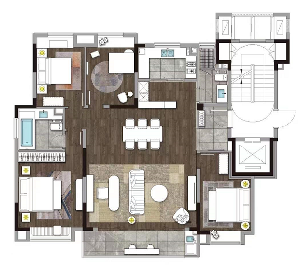 无论二孩家庭还是三代同堂的终极改善家庭居住,皆可为居者带来从容大气的空间,身份感与舒适度兼具。