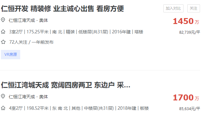以河西中部的仁恒江湾天成为例,目前二手房挂牌价普遍在8万/㎡以上,领跑板块二手房价格。