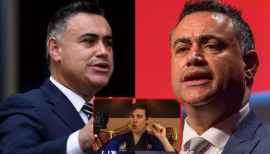 乔丹·尚克斯(中)2020年在YouTube上发布了两段攻击澳前政客巴里拉罗的视频