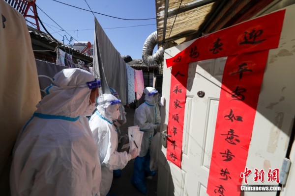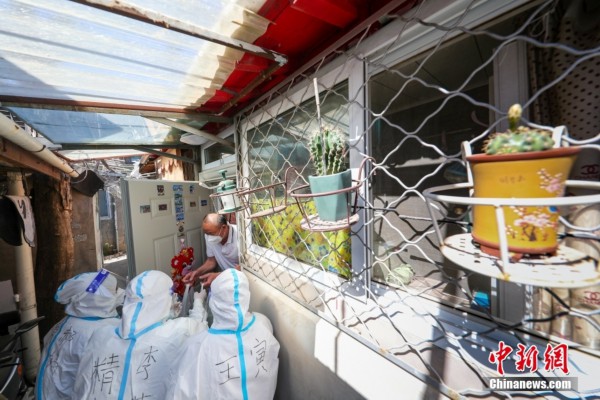 6月5日,工作人员走进胡同逐一为居民配送物资。当日是端午假期第三天,北京市天坛街道和精忠社区的工作人员为西草市东街等封管控区居民配送生活物资。自5月26日西草市东街多个院落被划为封控管控区后,街道和社区工作人员24小时在一线值守,确保居民生活物资供应和就医买药等需求。 中新社记者 贾天勇 摄