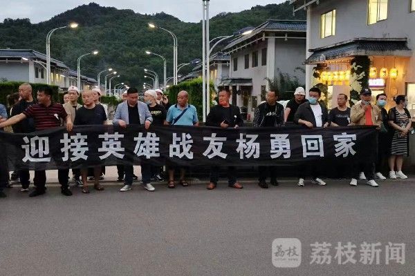 杨勇遗体回乡后,当地群众和生前战友自发地前来送别