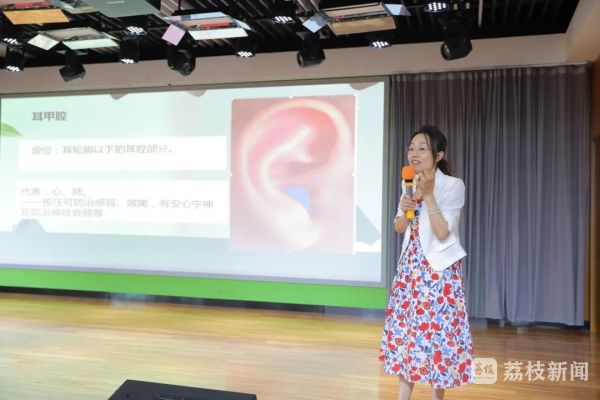 活动现场,江苏省中医院眼科护士长陈庆给孩子们上了一堂别开生面的防控近视小讲座“关注眼健康,认识小耳穴”。“人的耳朵其实隐藏着很多健康密码,你看它就像一个倒置的胎儿,头朝下,屁股朝上,利用我们的耳朵可以预防和治疗疾病……”课堂上,陈庆护士长为孩子们讲解耳穴的神奇功效,并教大家通过耳穴压豆的方法预防缓解近视。中医认为,人的五脏六腑均可以在耳朵上找到相应的位置,当人体有病时,往往会在耳廓上的相关穴区出现反应,刺激这些相应的反应点及穴位,可起到防病治病的作用,这些特定区域就是耳穴,通过按压、针刺等方式刺激这些点,可以缓解疲劳,提高视力。通俗易懂的语言,引人入胜的操作,让孩子们听得聚精会神,提问环节更是互动频频,气氛活跃。