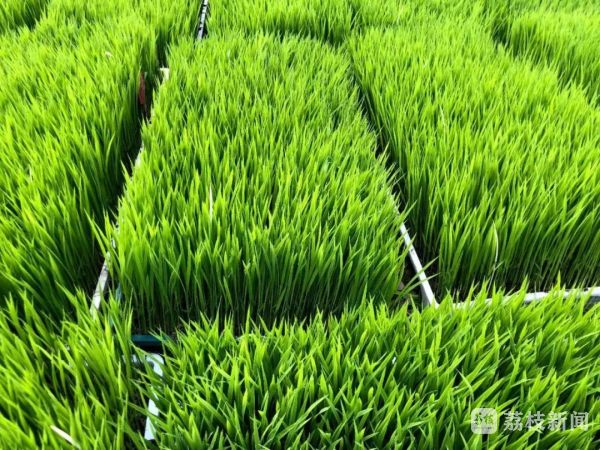 这一盘盘水稻秧苗,就像一个个迷你绿茵场,碧绿苍翠。把秧苗从秧盘上拉起,可以看到白色根系已经盘得结结实实,农民们直接卷起“绿茵场”方便装运。插秧机在稻田里来回穿梭,激起清脆水声的同时,为农田增添了绿意,栽下了“秋收万颗子”的希望。预计今年,太仓全市水稻种植面积达17.5万亩。