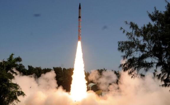 印度国防部宣布成功试射能够携带核弹头的“烈火”-4弹道导弹。