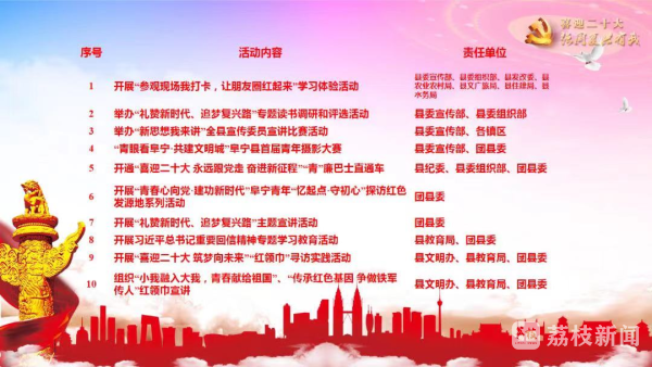据介绍,“八专题十打卡50项活动”将以群众熟悉的话语和乐于接受的方式,吸引广大干部群众踊跃参与,在参与实践中弘扬主流价值、提高精神境界,确保“强国复兴有我”群众性主题宣传教育活动出新出彩、走深走实。