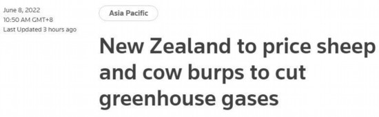 报道称,新西兰近一半的温室气体排放来自于农业,主要是甲烷,但农业排放此前已被豁免于该国的排放交易计划,这招致了人们对新西兰政府的批评。
