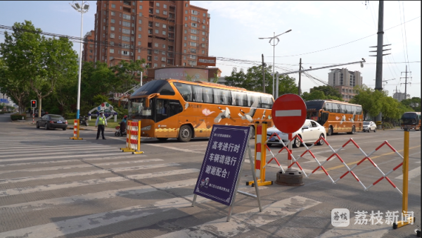 记者在第一中学考点周边路段看到,区公安局交警大队民警已在考场周边路段设置了临时交通标志,将单行、禁行、禁鸣、限速等标志牌摆放在了醒目位置。