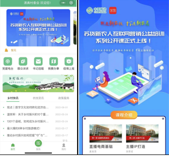 为汇集行业资源,打好数字乡村建设“组合拳”,近日,江苏省互联网协会与“江苏移动”APP、江苏移动数字乡村平台“苏兴农”小程序携手,开设“苏货新农人互联网营销公益培训系列公开课”专区。“苏货新农人”APP向江苏移动用户及江苏移动数字乡村平台用户开放公益课程接口,输送新农技,打造新农商,共同开启面向新农人的人才赋能专区。