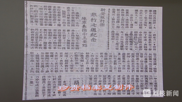 为了让档案更好服务人民、发挥社会效应,省档案馆今天向新安旅行团纪念馆移交了8件珍贵档案复制件, 其中包括1946年时媒体对新安旅行团的报道、田汉创作的新安旅行团团歌音像资料等。新安旅行团历史纪念馆馆长顾学让表示,这些档案填补了展品空白、丰富了展览内容,为广大青少年励志、启智提供了生动鲜活的教材,能更好发挥新安旅行团历史纪念馆作为全国教育示范基地的价值引领作用。