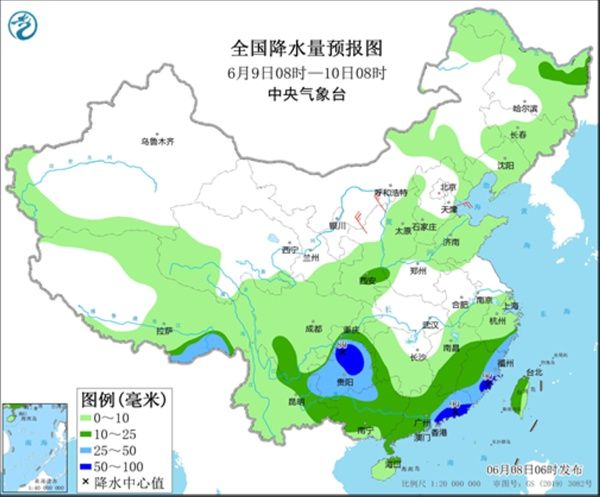 预计今明两天,江南南部、华南等地强降雨天气持续,并且降雨时空分布不均,一些地方会出现急促猛烈的短时强降雨。此外,四川南部、贵州西部等地也将出现大雨或暴雨。中央气象台今早继续发布暴雨蓝色预警。