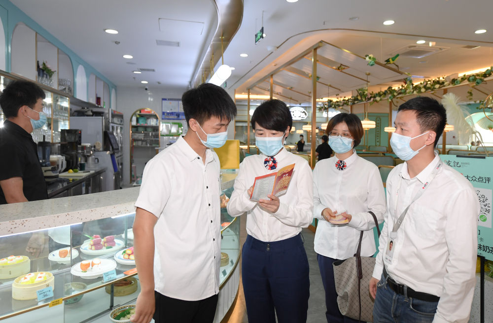 图为银行工作人员向一家餐馆的负责人介绍专为小微企业定制的快捷金融服务。新华社记者 翁忻旸 摄