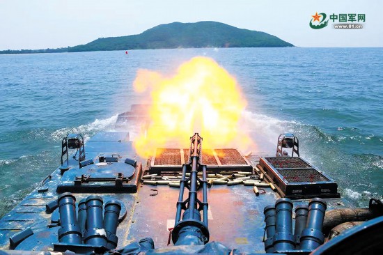 海军陆战队某旅组织跨昼夜海上实弹射击训练,一批新驭手、新射手在复杂海域经受考验。图为步战车对岸上目标进行射击。简贵洋摄