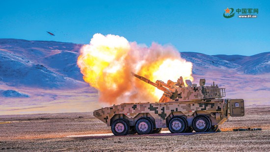 陆军某部在高原组织自行火炮实弹射击,收集新装备在高原条件下的实战数据。图为火炮射击现场。刘 诚摄