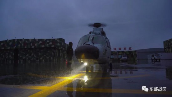 “云底高150-180米,能见度1.5公里左右,雨量密集,东北风60度,1-3米每秒……”场站气象值班员汇报后,东部战区海军某直升机团领导打定了主意:这是难得的复杂气象条件,是锤炼新飞行员实战能力的绝佳时机!
