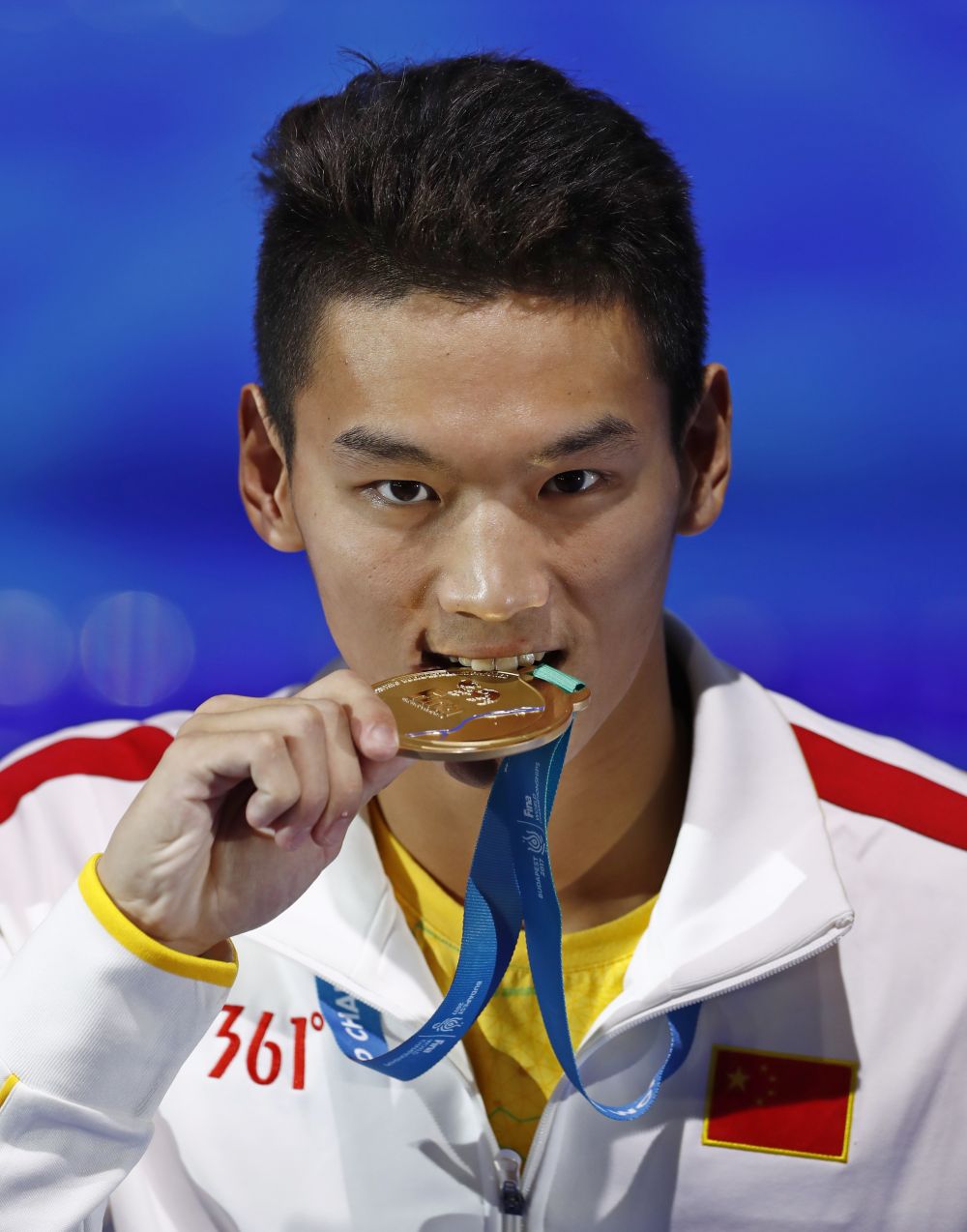 2017年7月25日,徐嘉余赢得布达佩斯游泳世锦赛男子100米仰泳冠军。新华社记者丁旭摄