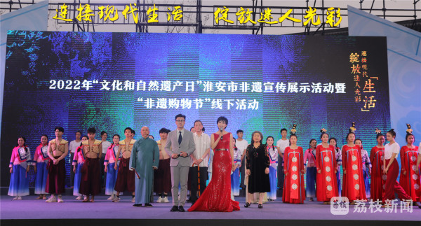 “千里风光大运河,南船北马清江浦。”昨天(6月10日)下午,2022年“文化和自然遗产日”淮安市非遗宣传展示活动暨“非遗购物节”在清江浦区里运河畔正式启动。精彩纷呈的活动,精致精美的展品,精妙绝伦的非遗技艺,受到广大市民、游客的一致好评。启动仪式现场,一曲欢快的《礼乐舞》拉开了活动序幕,《欢声笑语话非遗》相声表演、楚州十番锣鼓、淮阴区马灯舞轮番开演,带领观众领略了传统非遗的现代魅力。舞蹈《渔鼓戏》、情景表演《清江浦故事》等极具淮安地方特色的经典剧目演出,为观众带来一场精彩的视听享受。“2008年,楚州十番锣鼓被列入国家非物质文化遗产保护名录。楚州十番锣鼓在淮安地区已经流传了几百年,我们展演的节目是器乐合奏《咏花》《到春来》,表达了人民群众对幸福生活的向往之情。”淮安区阳光艺术团团长卢延萍说。