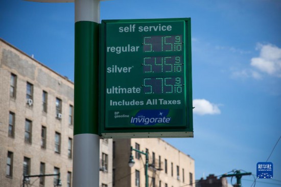 6月10日,美国纽约一处加油站的电子屏显示油品价格。新华社发(郭克 摄)