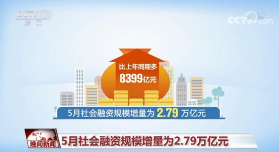 初步统计显示,5月社会融资规模增量为2.79万亿元,比上年同期多8399亿元。