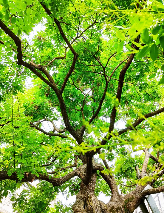 槐树是优良的香花树种,生命力顽强,适应性也强。槐树有国槐与洋槐(刺槐)之分,扬州街头已落花的大都是刺槐,而老城区驼岭巷深处的那棵千年古槐是国槐。这棵国槐因为“南柯一梦”的传奇故事闻名遐迩,常常有人慕名参观。