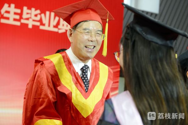 2022届毕业生以“鼎”献礼母校,祝贺母校70华诞。江苏第二师范学院校领导、校学位委员会委员为全体毕业生颁发毕业证书,为每一位学士学位获得者拨正流苏、授予学位证书并合影留念。