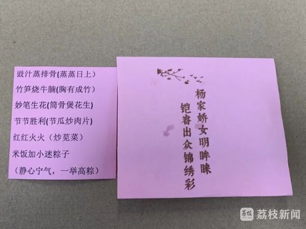 除了精心挑选和搭配的菜肴,班主任王涛老师还以每个孩子的名字为由送给每个孩子一首祝福诗。如杨铠睿同学祝福语:杨家娇女明眸睐,铠睿出众锦绣彩;程永杰同学祝福语:程安锦绣展翅鹏,永杰帅气福永恒等等。