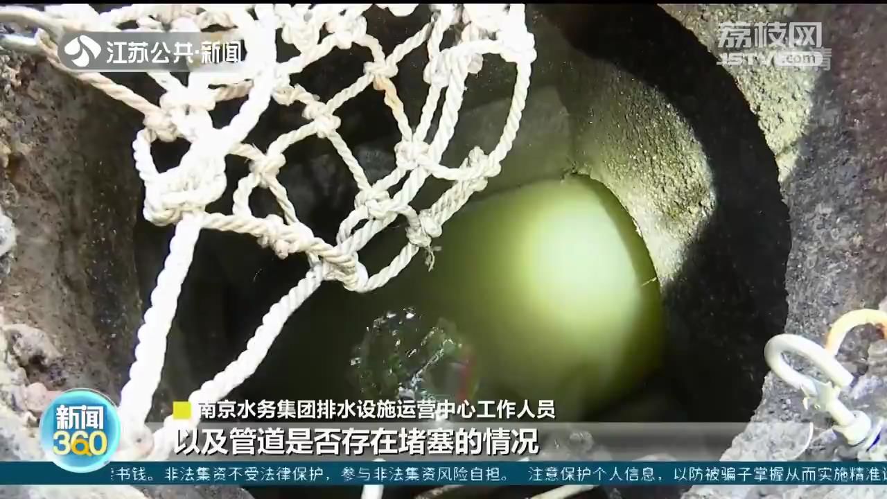 南京水务集团排水设施运营中心工作人员介绍,看挂钩是否完好、井圈是否牢固,第二是检查防坠网和挂钩之间是否连接完好,观察水位上有没有漂浮物,以及管道是否存在堵塞的情况。