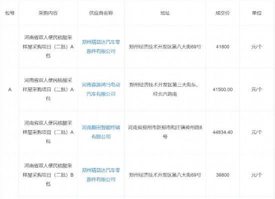 中新经纬注意到,河南省目前已公布两个批次“双人便民核酸采样屋采购项目”采购结果。