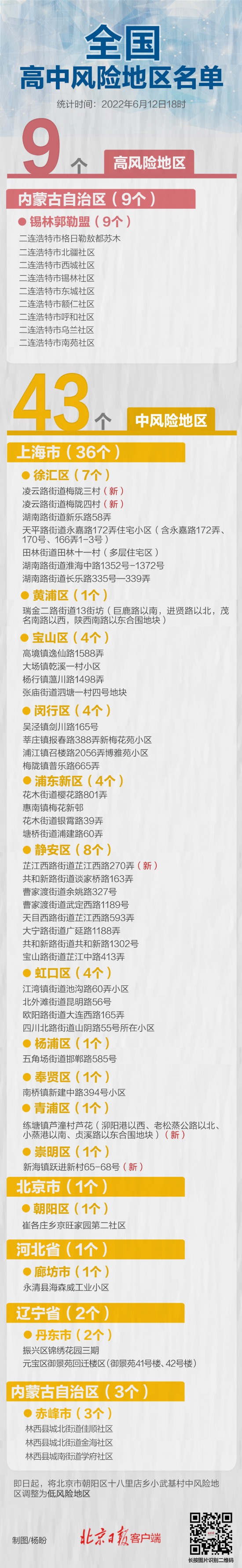 调整后,全国有高中风险地区9+43个。