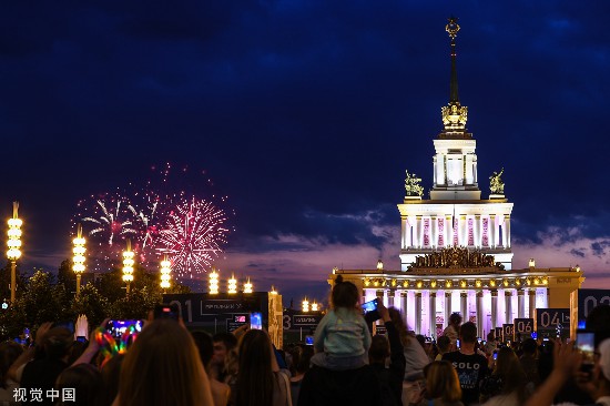 当地时间2022年6月12日,俄罗斯首都莫斯科,当地举行灯光秀庆祝“俄罗斯日”视觉中国 图