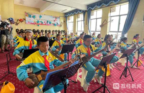 循着音乐声,记者走进了学校的实验综合教学楼。在音乐教室里,老师正带领孩子们用扎木年弹唱《毛主席的光辉》,歌声稚嫩而又真诚。崭新的教学楼里,科技教室、图书室、实验室也是一应俱全。