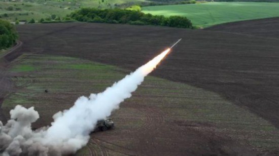 13日,俄军向乌克兰阵地发射一枚“龙卷风”重型火箭炮弹。(俄罗斯卫星社)