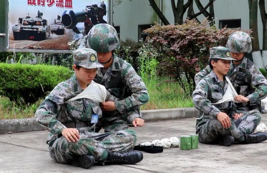 女新兵们开始进行自救互救考核