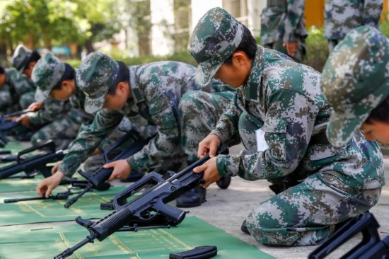 ▲认真进行枪支分解结合。