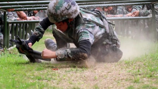 ▲女兵斗志昂扬。