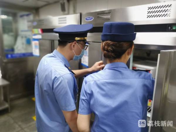 今天(6月14日)上午,南京市秦淮区市场监管局执法人员首先来到了一家大型连锁餐饮门店的冷菜间,对冷菜加工的操作流程,加工环境,卫生情况,食材储备等方面进行了突击检查。